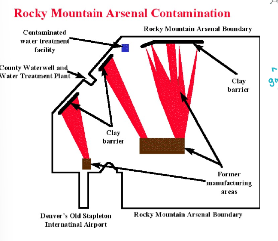 -efforts contain liquid wastes began after the discovery that contaminated groundwater caused crop damage north of RMA in the mid-1950s