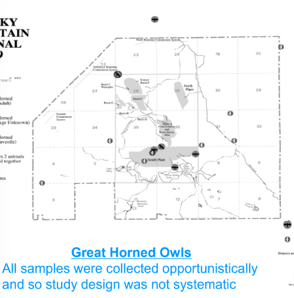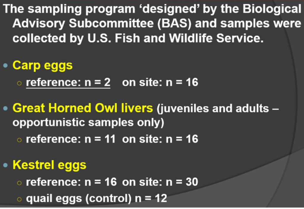 -statistically significant differences in TCDD-EQ between adult owls from reference and RMA (small sample size may not be representative)