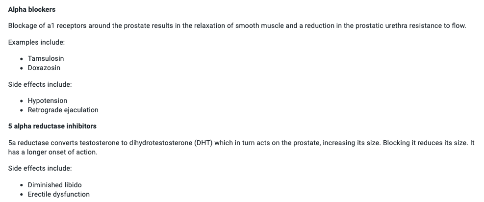 Associated Symptoms: dysuria, frequency, haematuria, terminal dribbling, weight loss, night sweats, constipation, symptoms of prolapse