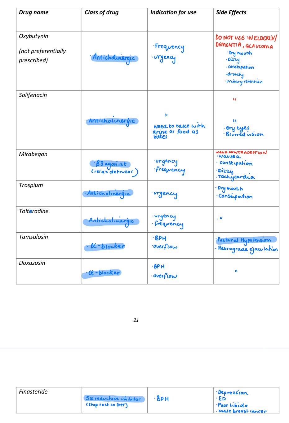Urge: recurrent UTI, smoking, caffeine, high BMI