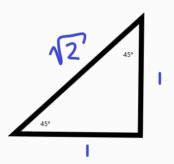 45° triangle used to make ratios in trigonometry