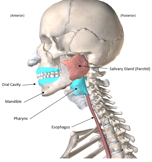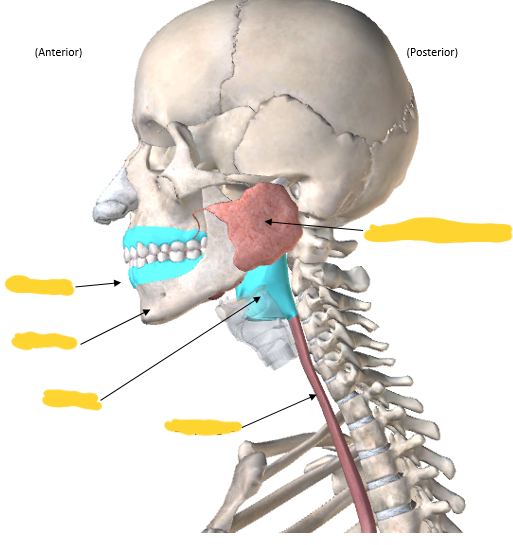 Upper alimentary canal (oral cavity and pharynx highlighted in blue)