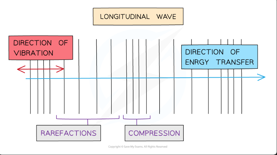 This means the direction the particles vibrate is parallel to the direction of the energy transfer