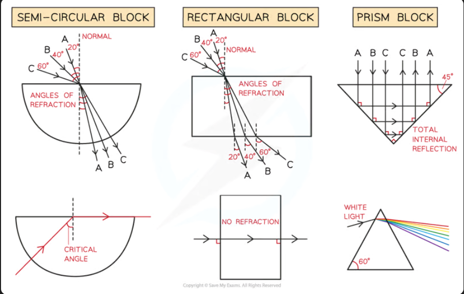 Repeat the procedure for each shape of perspex block (prism and semi-circular)