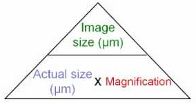 Actual Size = Image Size ÷ Magnification