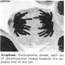 • Spindle fibres contract to pull sister chromatids apart at the centromere.