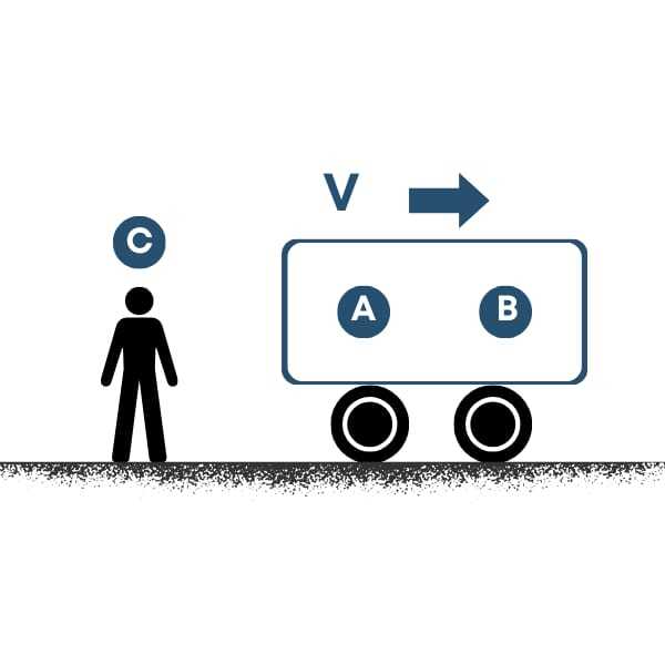 For example, a stationary observer on the ground sees a ball thrown in a moving train differently than a passenger inside the train.