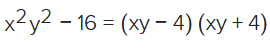 x^2y^2 is the square of xy, and 16 is the square of 4