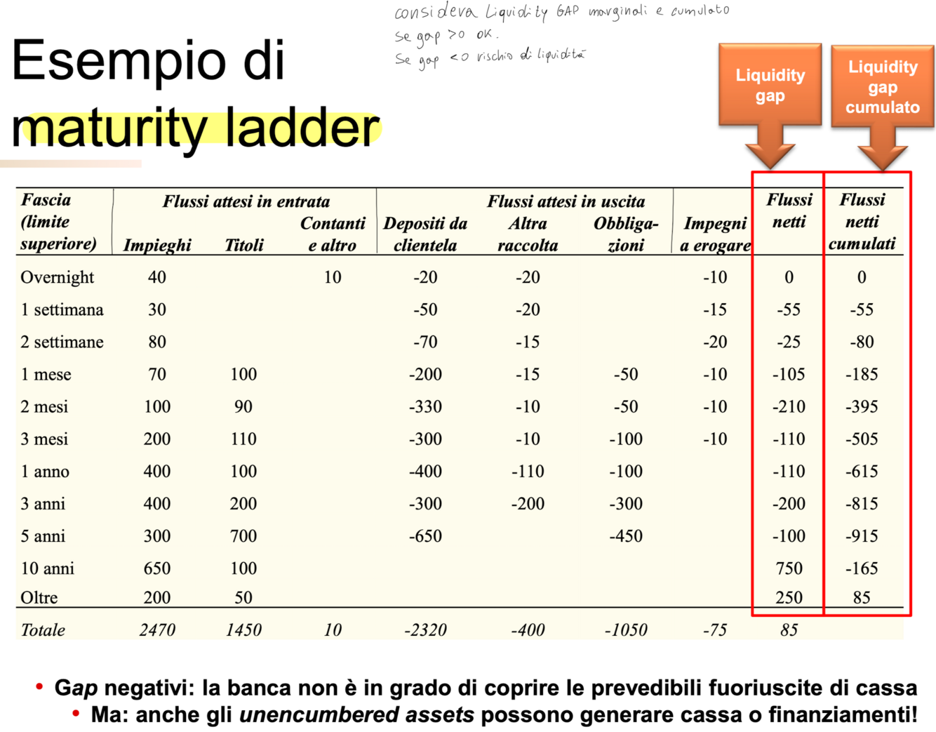 Se Liquidity GAP > 0, allora tutto ok. Se < 0 allora c’è rischio di liquidità.