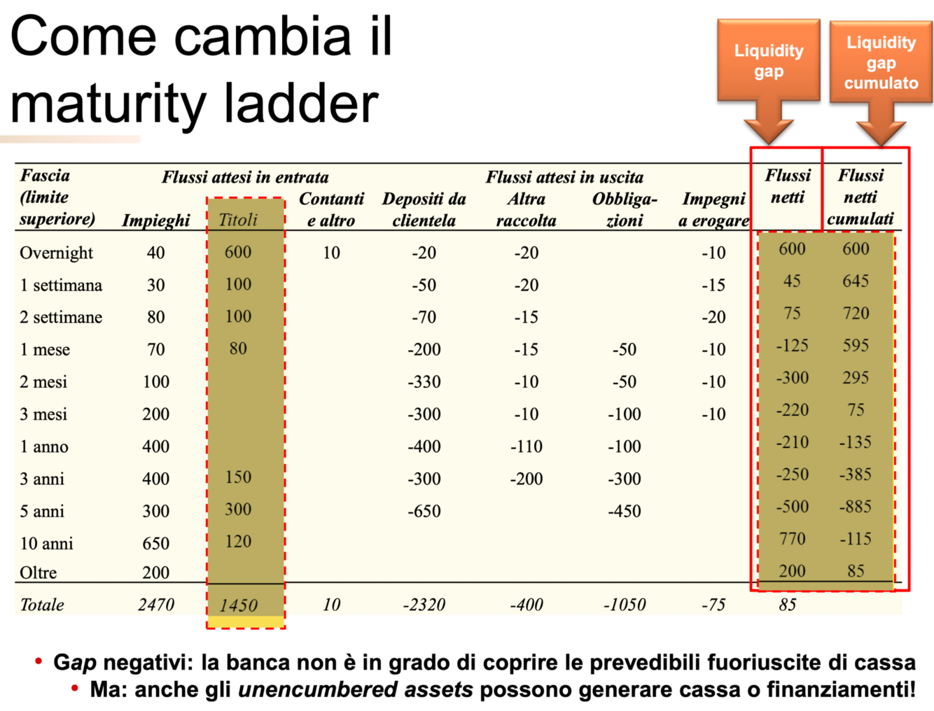 Una quota di unencumbered eligible assets andrà dunque ascritta alle fasce a brevissimo termine