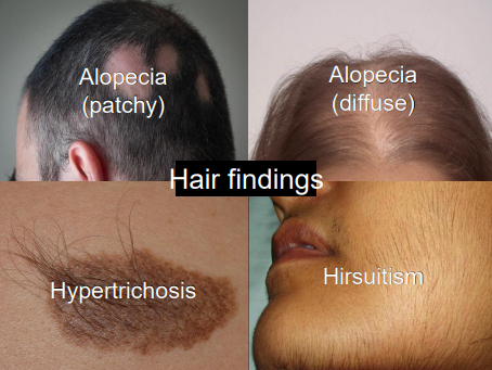 Hirtuism- lots of hair, androgen defined e.g. PCOS