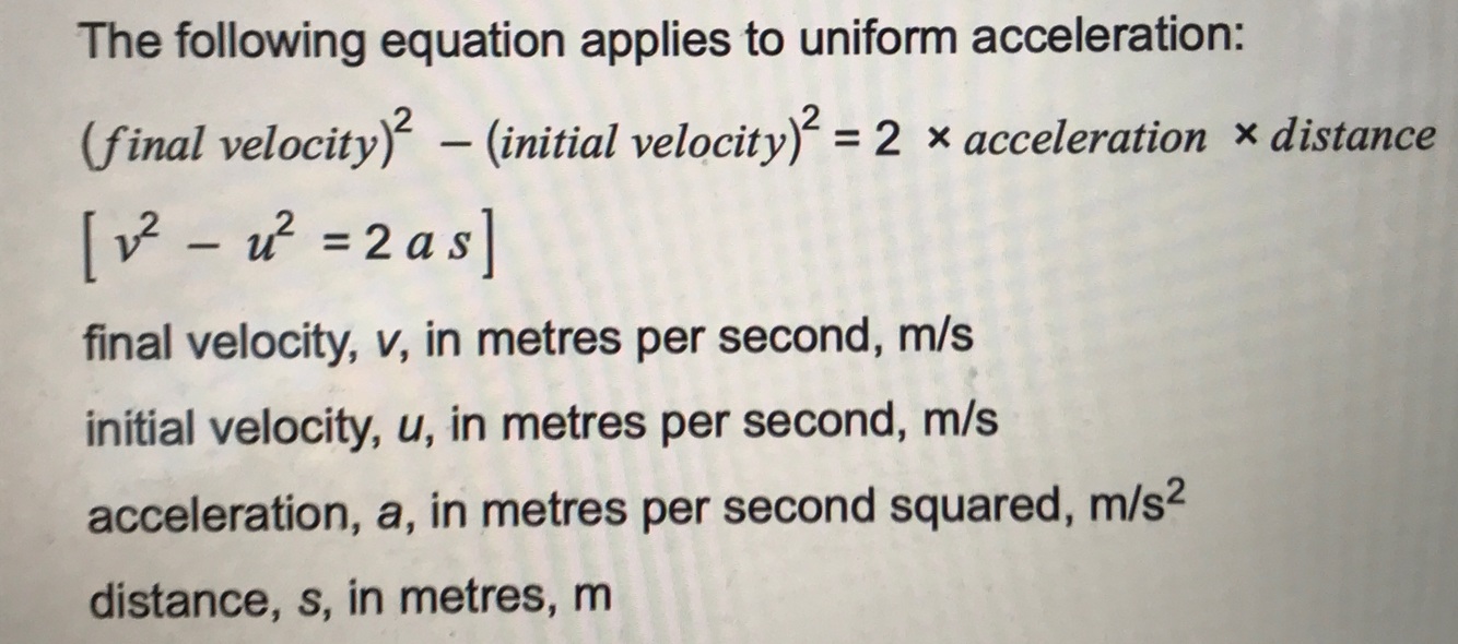 Equation for uniform acceleration: