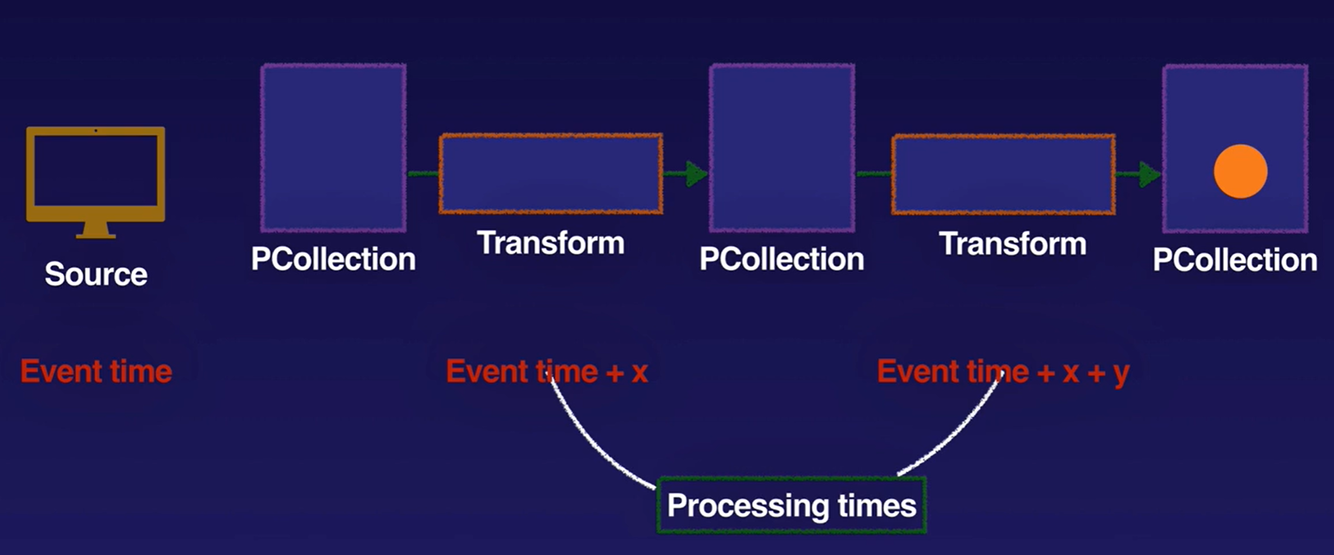 • Processing time, which is the time that the data element is processed at any given stage in the pipeline.