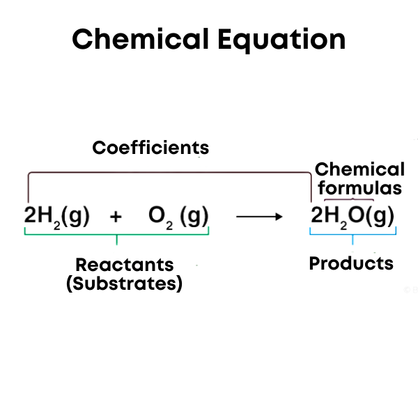 An equation showing the ratio of reactants and products with an equal number of atoms for each element on both sides of the equation.