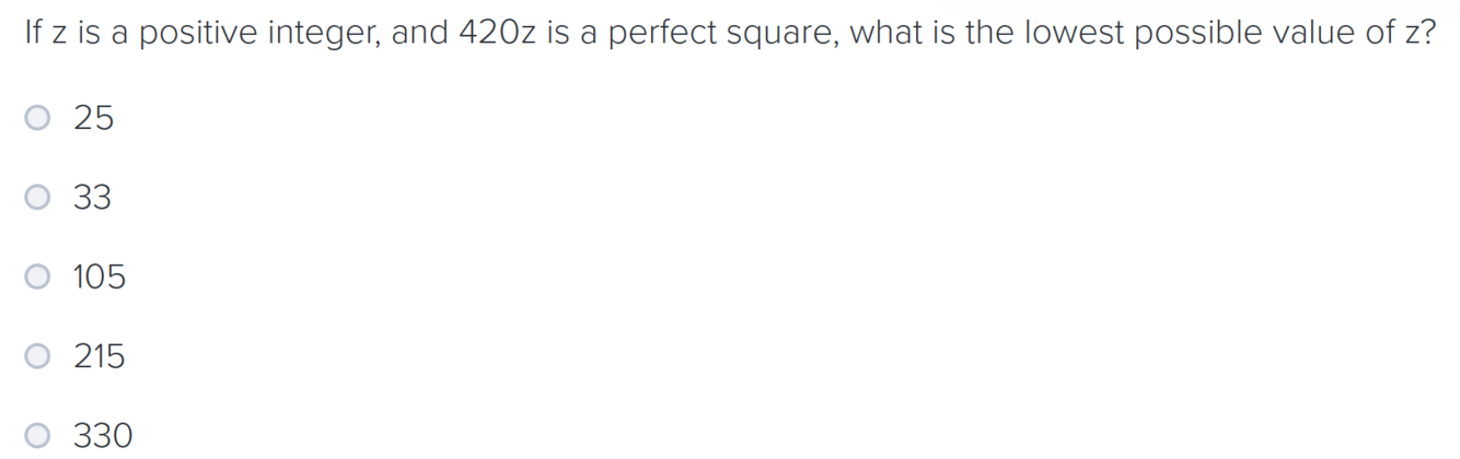 To make a perfect square, z must contribute to the missing factors.