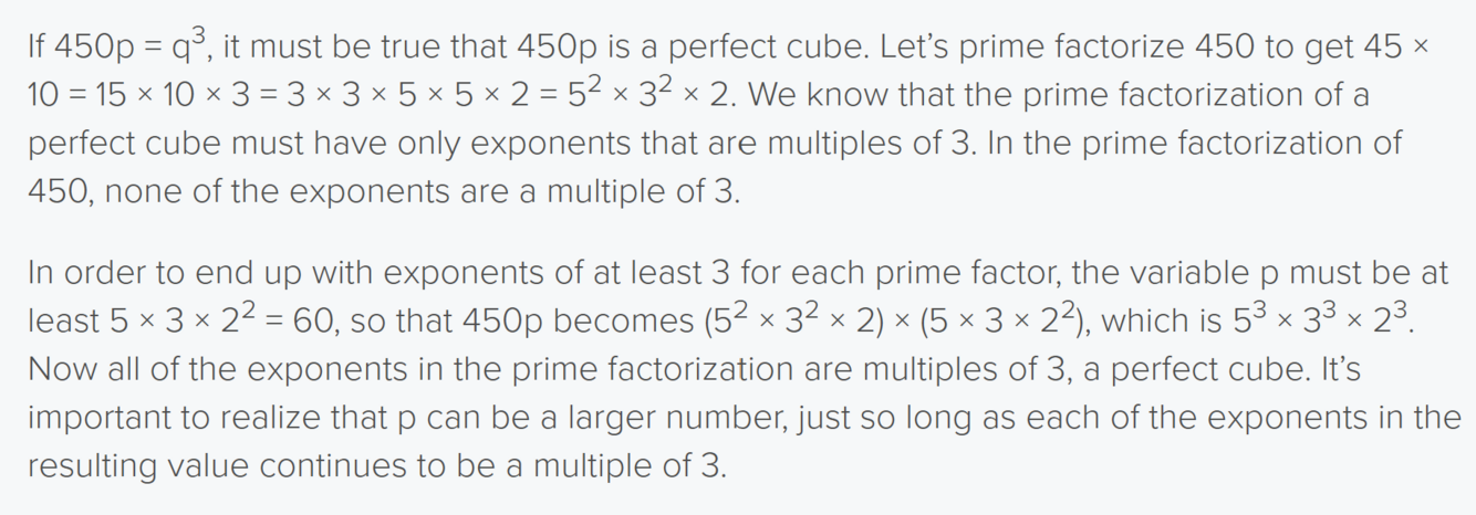 If some number x is a perfect cube, the prime factorization must contain only exponents that are multiples of __3__