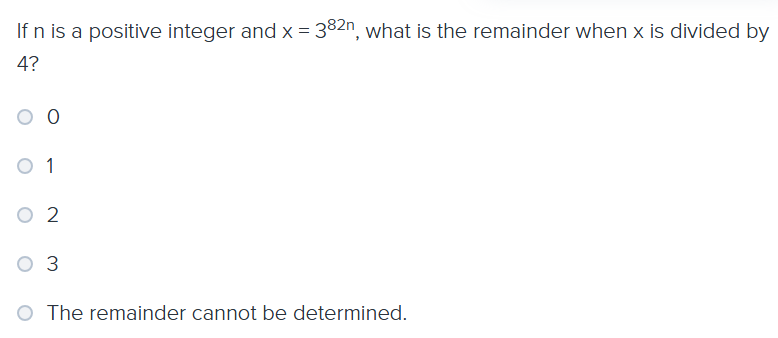 When we divide consecutive positive integers by integer n, the pattern of remainders will be …. 0, 1, 2… n-1