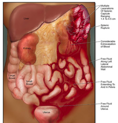 - Blunt trauma: seatbelt injuries, falls onto the left side