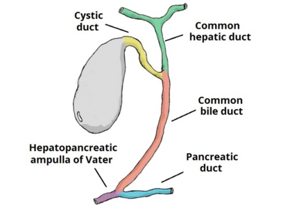 Stored in the gallbladder until released to duodenum: