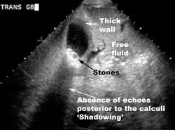 What would you see on ultrasound with gallstone pathology?