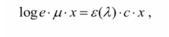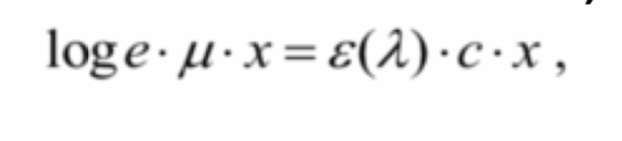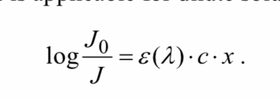 an expression, valid for dilute solutions, stating that the absorbance of the solution is proportional to the concentration (c) and to the thickness of the material → the proportionality factor is the molar extinction coefficient