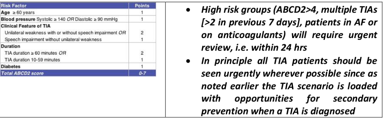 Helps to guide when to see a patient following a TIA
