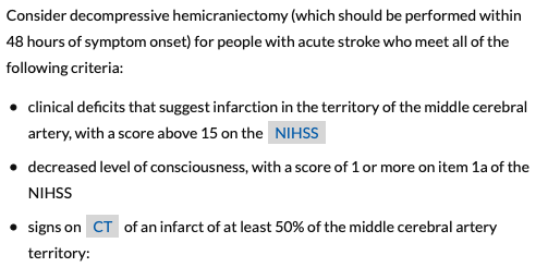 Which patients with hameorraghic stroke should have a decompressive hemicraniectomy? (should be done within 48 hours of stroke)