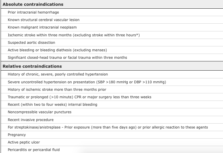What are some contraindications for thrombolysis?