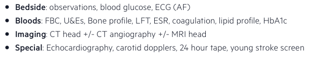 Diffusion weighted MRI more sensitive for ischaemic stroke but quicker to do CT to rule out haemorrhage as this is CI for thrombolysis