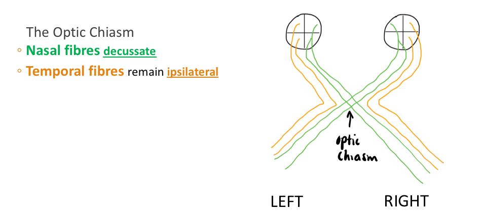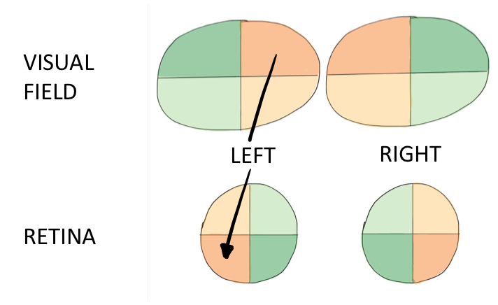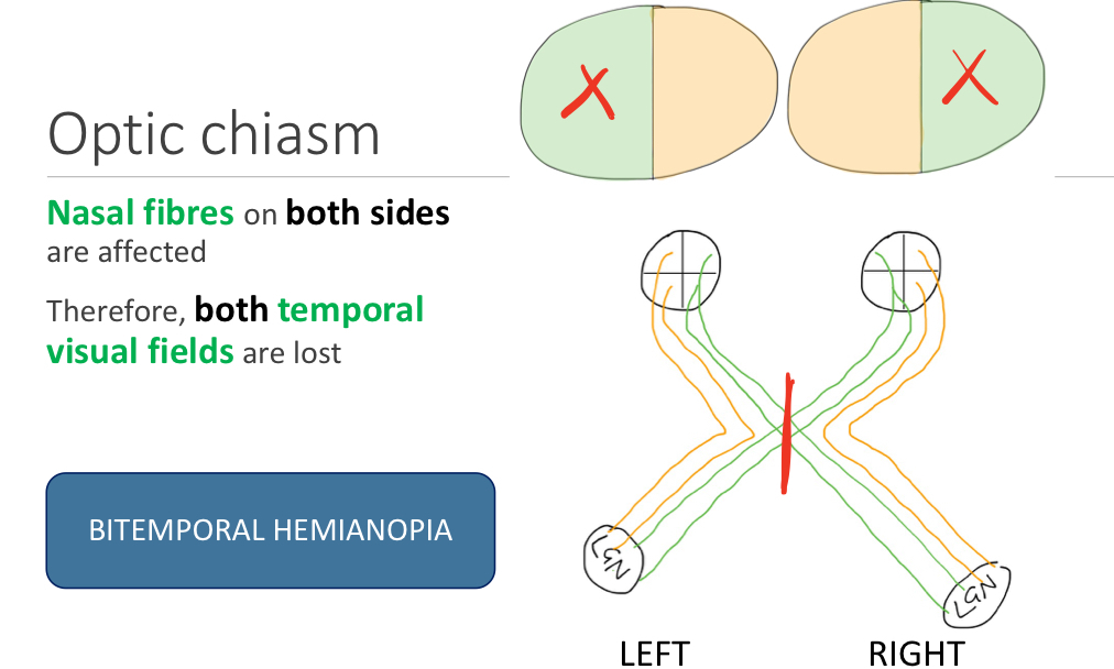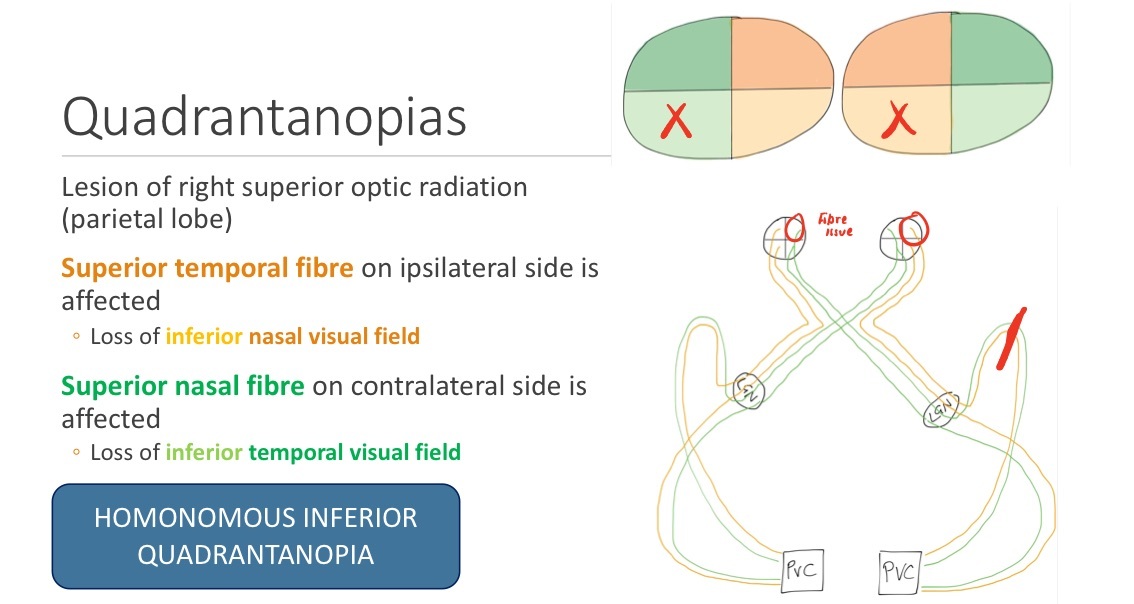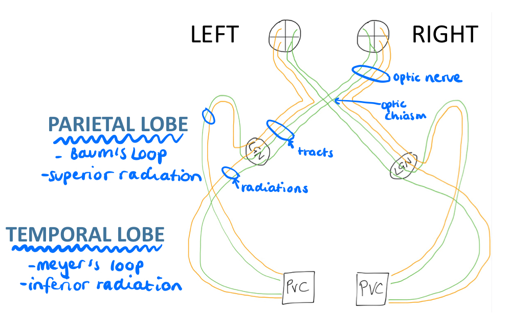 Visual field defects are names on area of visual loss not the lesion so draw the diagram out!!!