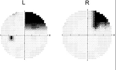What type of visual field loss is this, and where is the lesion in the visual pathway?