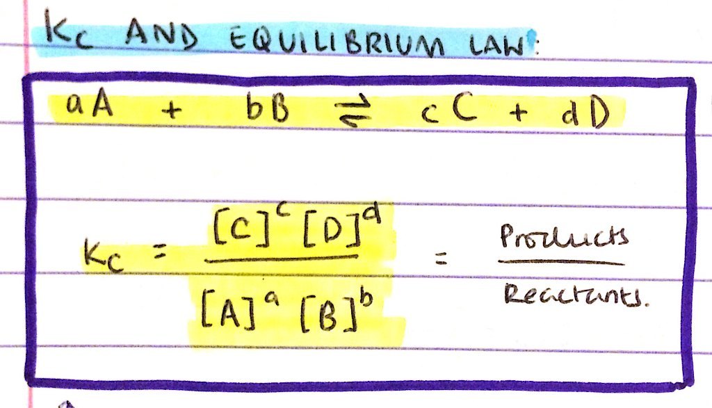 Define the equilibrium law and it’s relationship with Kc = ?