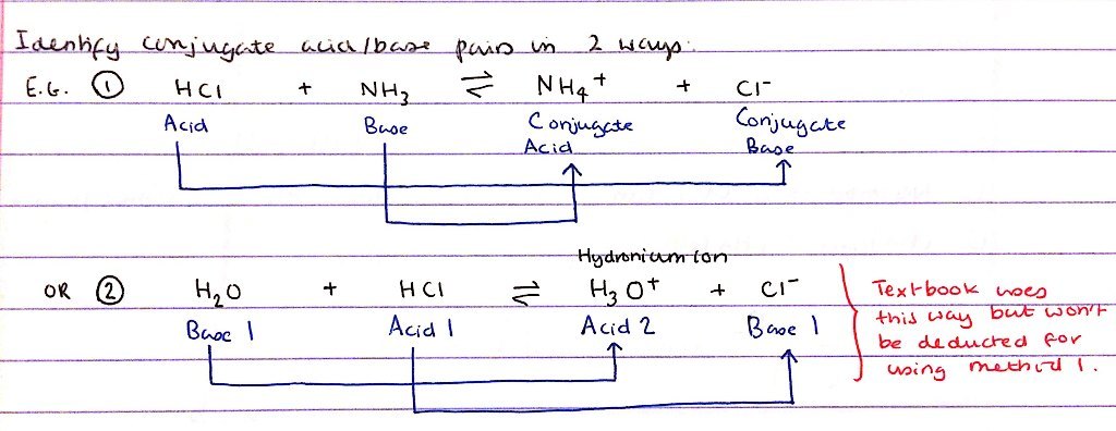 Conjugate acid = A species that releases a proton to form a conjugate base