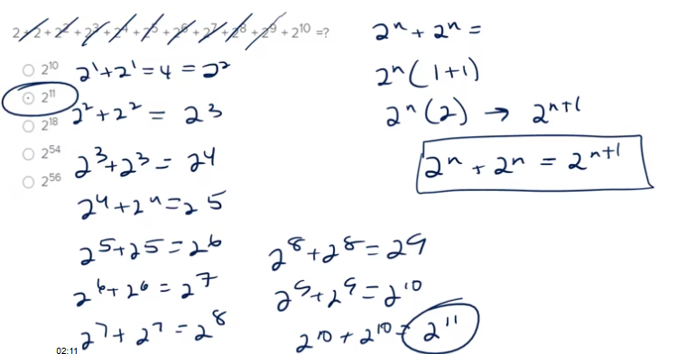 Its like a waterfall, the 2+2= 2^2, which that added to 2^2 = 2^3… and so on…