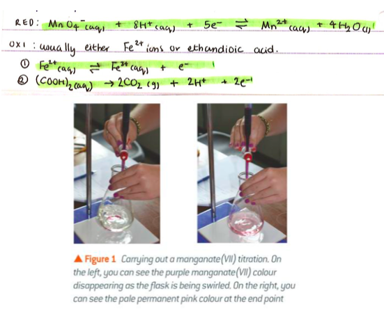 Describe the procedure of carrying out a redox titration: manganate (VII) titration (7)