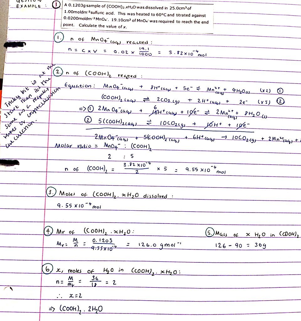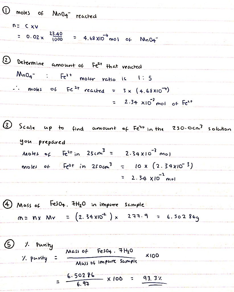 Analysing the percentage purity of an iron (II) compound from a redox titration