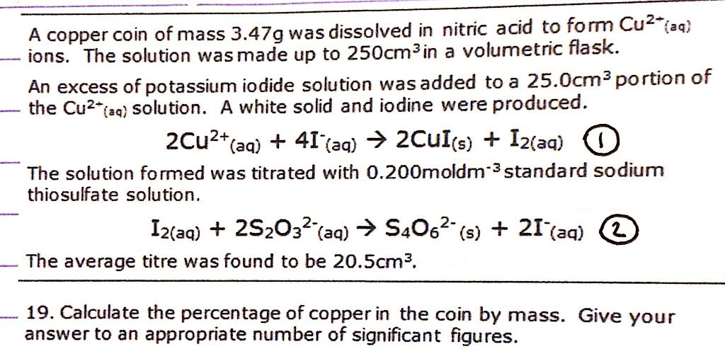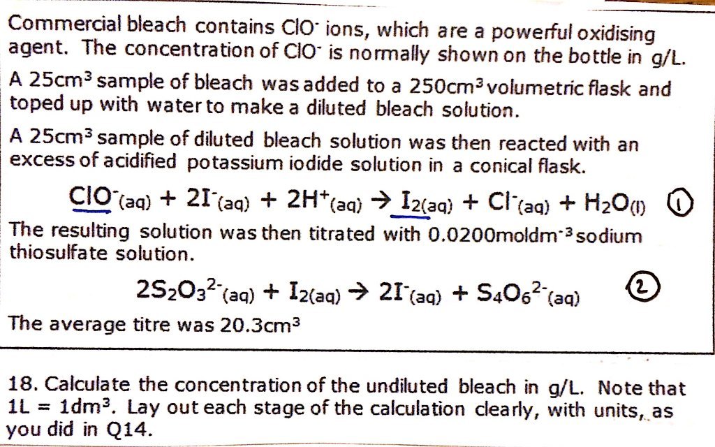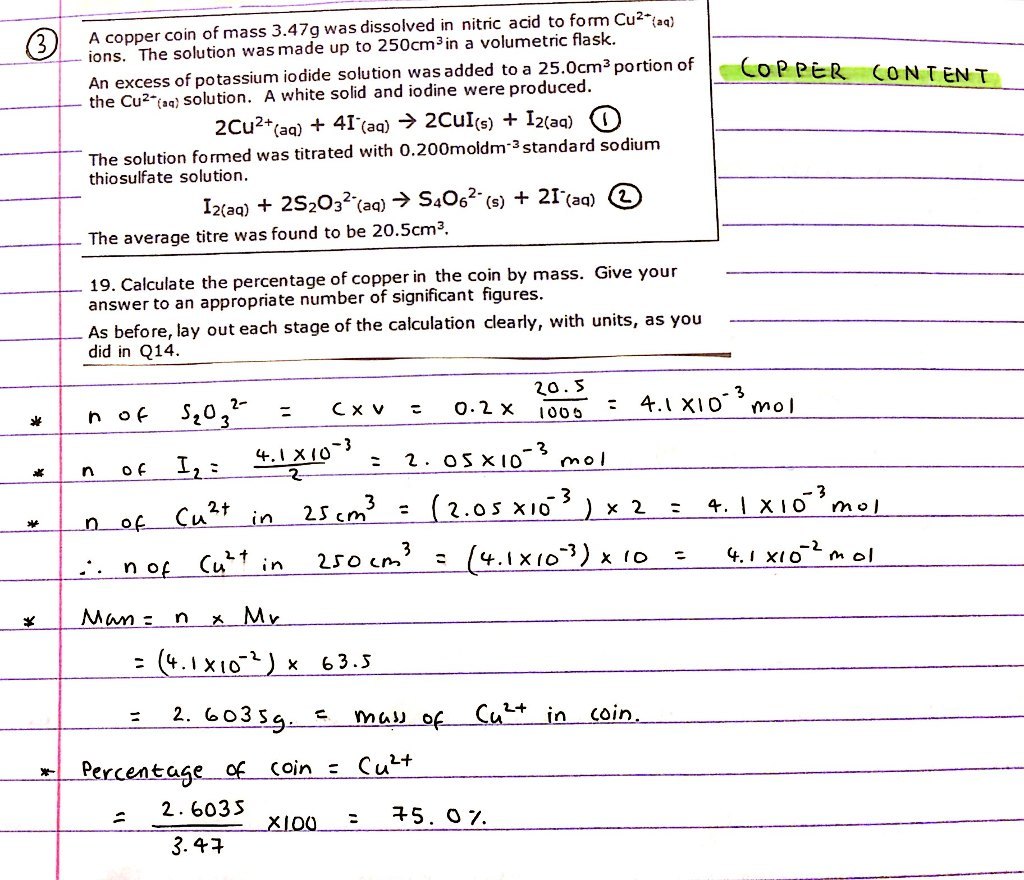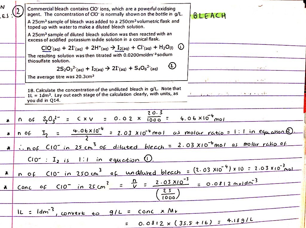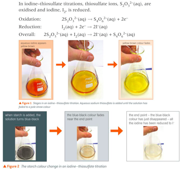 Redox titration of iodine / thiosulphate: