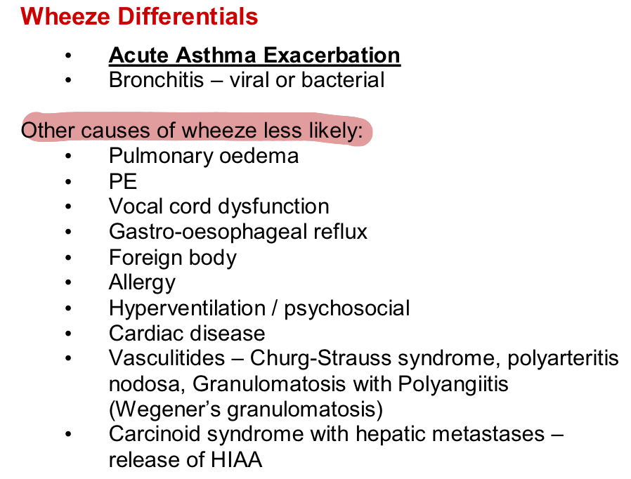 What are some differentials for a wheeze apart from asthma>