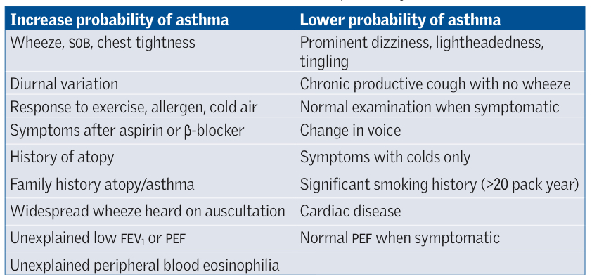 - PEF monitoring (diurnal variation with >20% variability on >3days in 2 weeks)