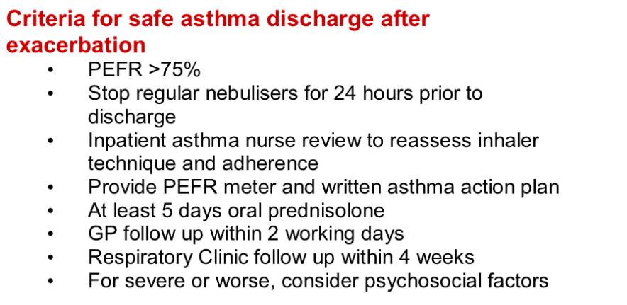 What is the criteria that needs to be fulfilled for a safe discharge after an asthma exacerbation?