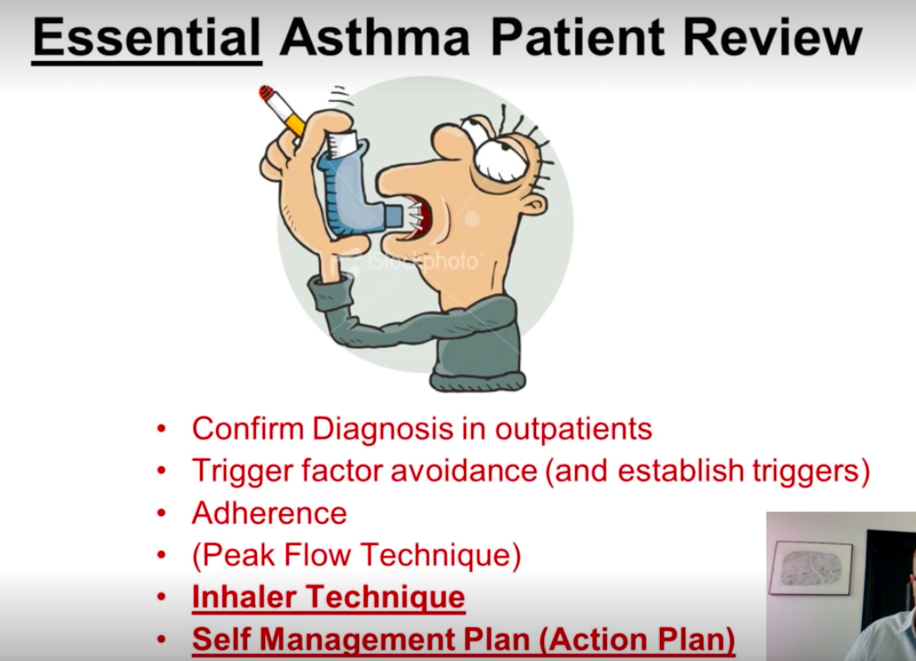 Need to check inhaler technique, inhaler adherance, smoking and self management plan