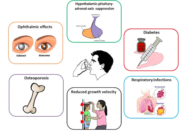 How do inhaled corticosteroids help asthma and what are the side effects of these?