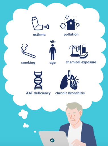 Causes: smoking, alpha antitrypsin deficiency, industrial exposure e.g soot
