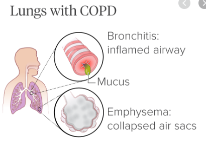 Chronic Bronchitis: Cough and sputum production on most days for 3 months in 2 successive years
