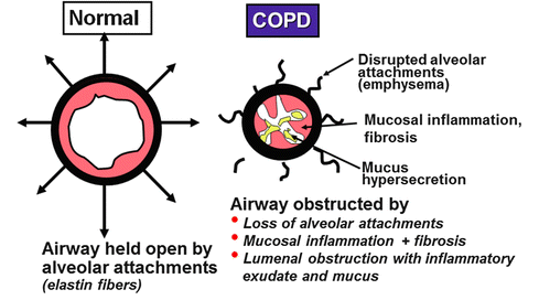 What is the pathophysiology of COPD?