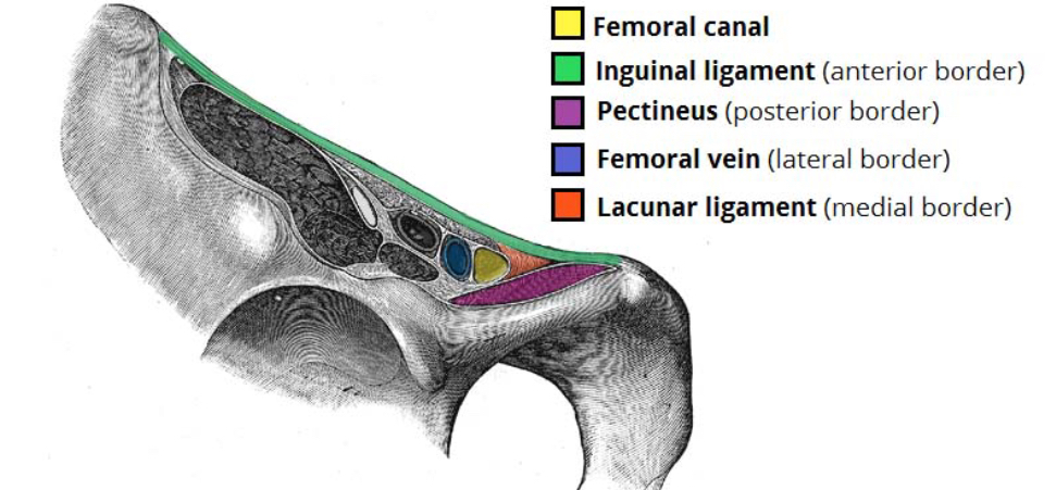 Superior border is the femoral ring that is normal covered by a septum but some omentum or abdominal contents can get through and cause a hernia