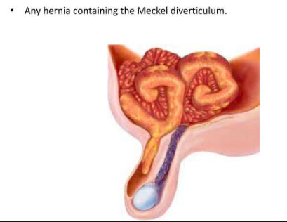 Littre: herniation of a Meckels diverticulum, often into inguinal canal and often becomes strangulated