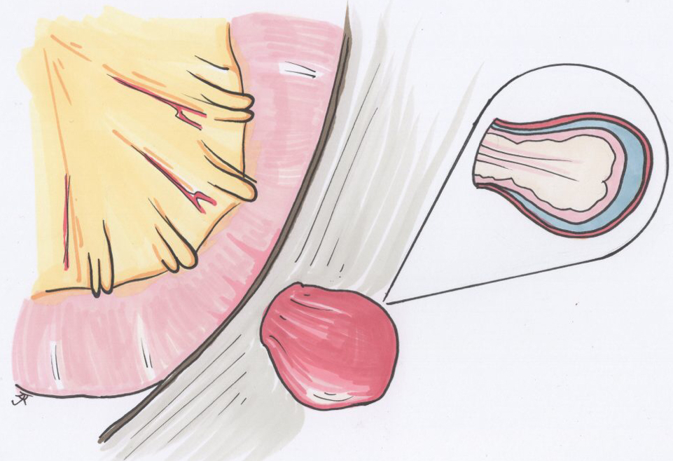 - Surgery within 2 weeks of presentation due to risk of strangulation