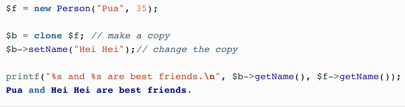 $copy = clone $original;