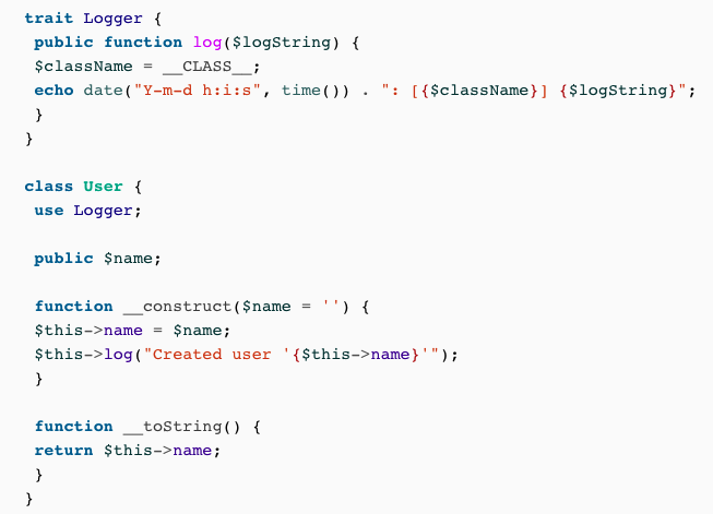 How do you define and then use a trait on a class?